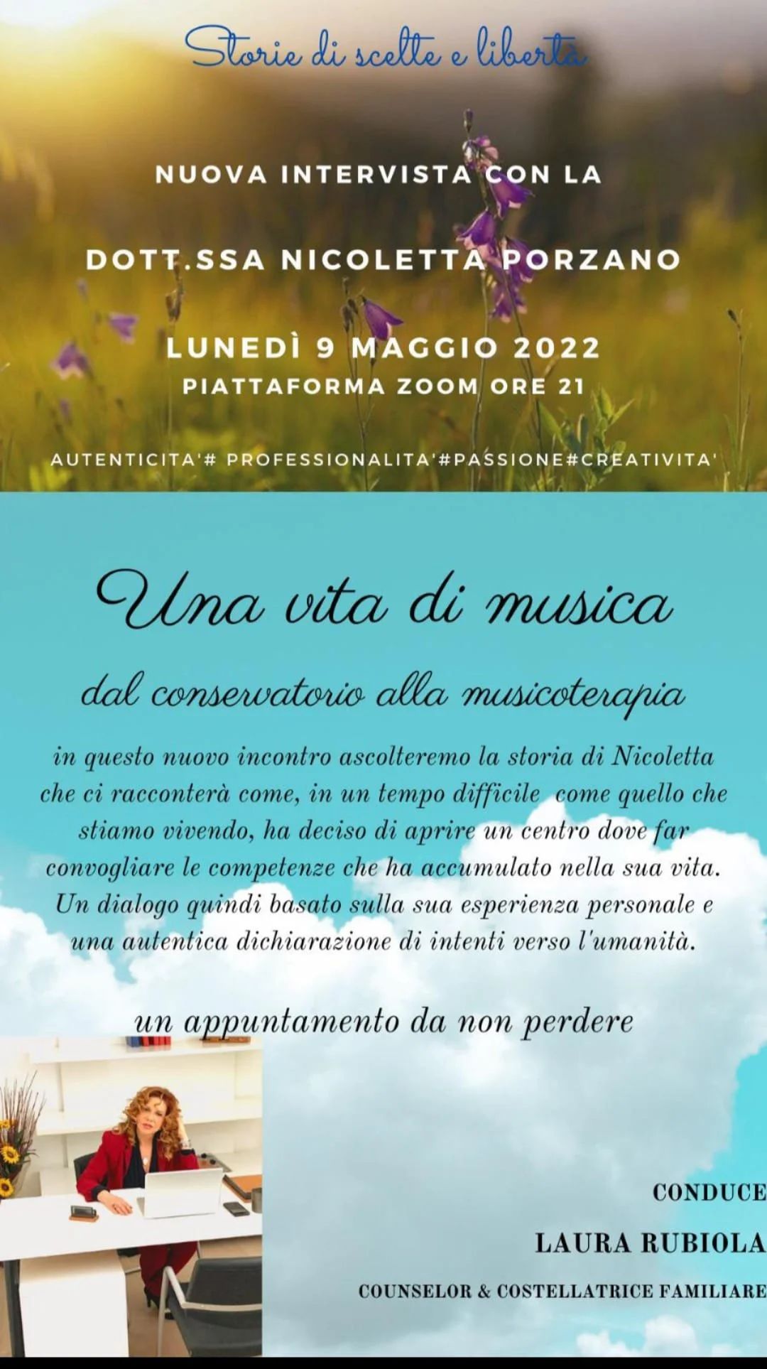 Durante il mio percorso di crescita professionale come musicista mi sono dedicata con passione e amore alla musica a 360 gradi considerandola non soltanto dal punto di vista culturale, ma anche come missione per aiutare le persone con disagi attraverso l’uso della musicoterapia clinica, partendo sugli effetti che la musica produce negli esseri umani secondo i principi delle moderne neuroscienze.